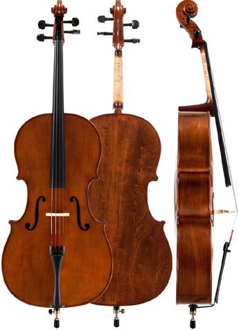 Wiolonczela Franz Sandner SC-200 Instrument wykonany w 100% z litego drewna. W zestawie: