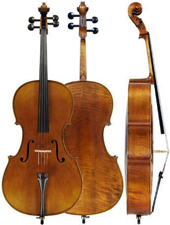 Wiolonczela Franz Sandner SC-6 Instrument ręcznie robiony z drobnym rysunkiem drewna. W zestawie: